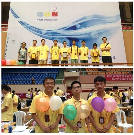 ACM国际大学生程序设计竞赛上海程序设计邀请赛于2014年7月12日在上海大学举行,北京理工大学生软件科技创新创业基地派出3支队伍参加上海赛区的邀请赛,其中本科2012级的刘明汉、秦欢、牛冲同学组成的“2Bpencil”队伍在比赛中获得银牌的好成绩!此外,由潘虹宇等组成的“akemi_Death_last”队伍和朱翼等组成的“BIT_Yukiiiiii”队分别获得了铜牌的优秀成绩。