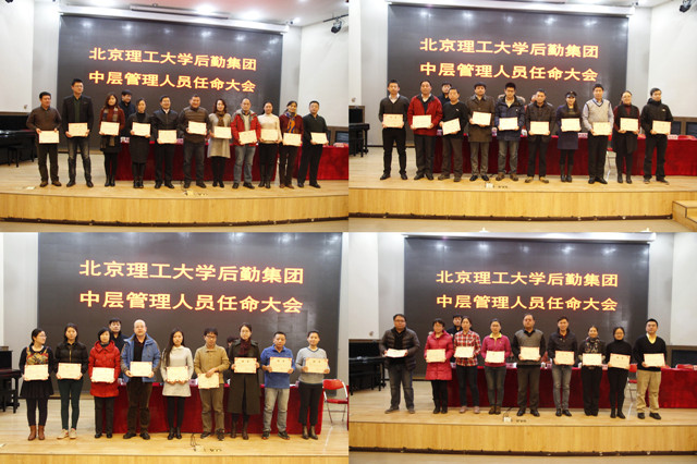 2016年12月16日下午2:00,后勤集团中层管理人员任命大会在7号楼一层报告厅隆重召开。出席大会的学校领导有常务副校长杨宾,后勤集团董事会成员:校党委组织部部长张笈、校财务处处长任世宏、国有资产管理处处长宋希博,后勤集团现职领导、保留处级待遇领导、集团现职中层管理人员、被任命的中层管理人员、集团部门经理(主管)、集团职代会全体代表参加了大会。任命大会由后勤集团党委副书记姜金凤主持。后勤集团总经理李晋平宣布了后勤集团中层管理人员任命决定。