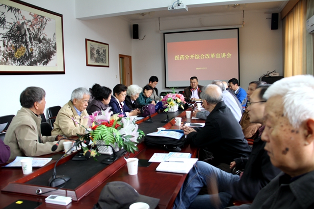 2017年4月7日上午8:30,北京理工大学离退休工作处在远志楼210会议室组织召开医药分开综合改革政策宣讲会。会议邀请校医院院长孙胜林、校医院党总支书记刘川主讲,离退休教职工党委各支部支委代表以及学校家属区各片区负责人参加会议,会议由离退休工作处处长周连景主持。