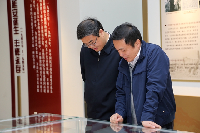 在校史馆,张军、胡海岩驻足一幅幅图片、一件件展品,认真回望北理工辉煌的办学历史,追寻北理工的发展根脉,重温徐特立老先生教育思想,感受北理工的红色基因,传承北理工精神。胡海岩对北京理工大学办学理念、大学精神作了详细介绍,新老校长进行了深入交流。
