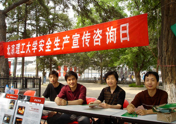 6月12日(星期日)上午,按照国家和北京市的统一要求,实验室设备处联合保卫保密处、宣传部、材料科学与工程学院、总务后勤部等单位,在学校北篮球场东侧小花园,共同举办了“安全生产宣传咨询日活动”。