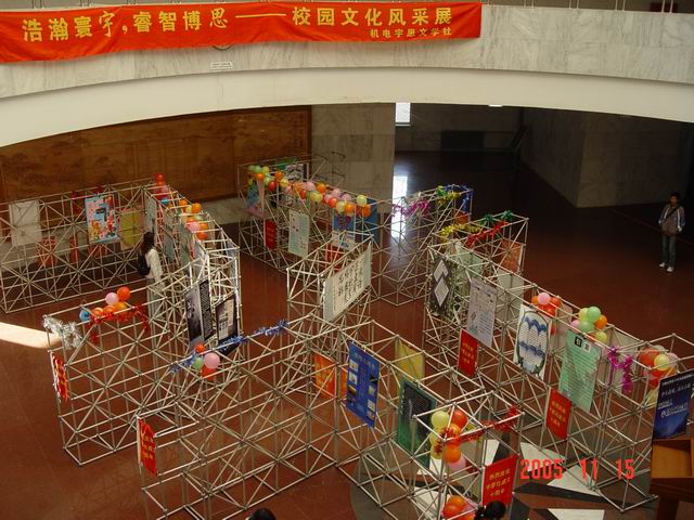 2005年11月20日晚7:00,由机电工程学院分团委主办,机电工程学院宇思文学社承办“宇思文学社十周年社庆晚会暨‘青春’有奖征文颁奖典礼”在中心教学楼一层报告厅拉开了帷幕。