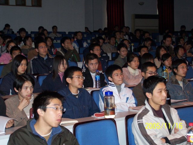 接下来,另一位嘉宾蒋部长又作了关于企业人才培养及大学生职业规划的讲座,这些都是大学生们所关心的话题,同学们听得格外认真,蒋部长也是耐心而细致地为大家讲解。
