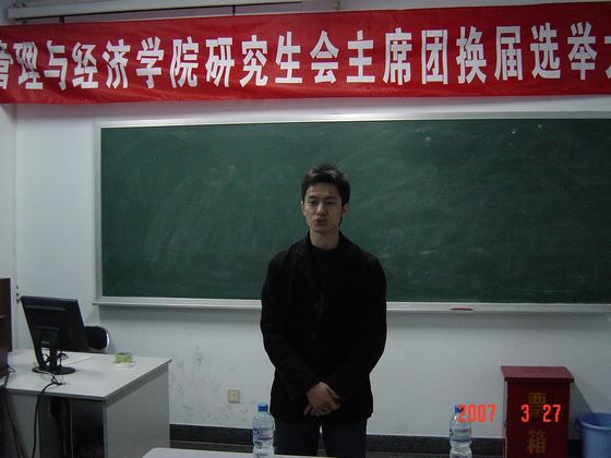 2007年3月27日晚,管理与经济学院研究生会主席团换届选举大会在北京理工大学中心教学楼1036举行。