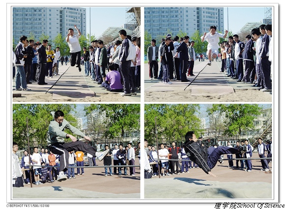男子110米栏的比赛让我们目睹了“理院刘翔”的风采,新的记录见证了我们的进步。欢笑中,趣味接力为本次运动会画上了圆满的句号。