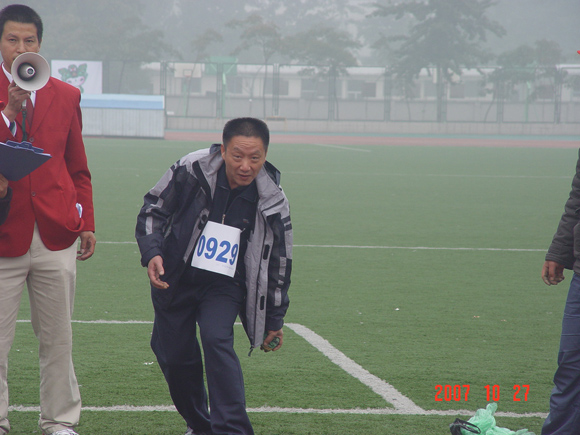 在女子中年组60米赶球跑决赛中,洪杰获得第二名;