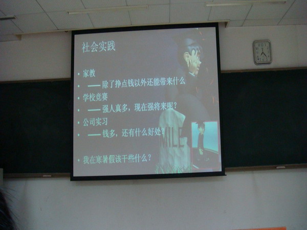 王培龙学长耐心、细致地述说了他的大学生活、大学生常有的误区以及怎样避免和解决这些误区,在职业规划,价值取向和人际交往方面给同学们提出许多好的建议。