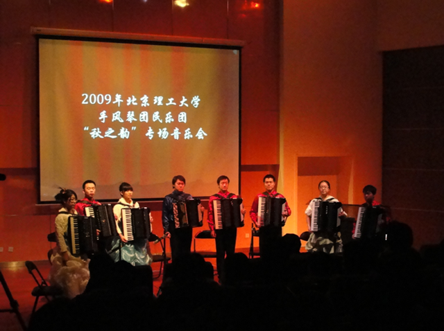 继5日中关村演出之后,由北京理工大学团委和艺术教育中心主办,校艺术团手风琴团、民乐团承办,校艺术团服务中心协办的“秋之韵”音乐沙龙于12月6日在北京理工大学基础教育学院成功举办,这是一场由手风琴团又与民乐团联手演绎的一场键盘乐与民乐交相辉映、别具一格的演出盛宴。