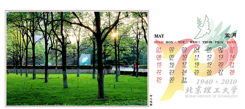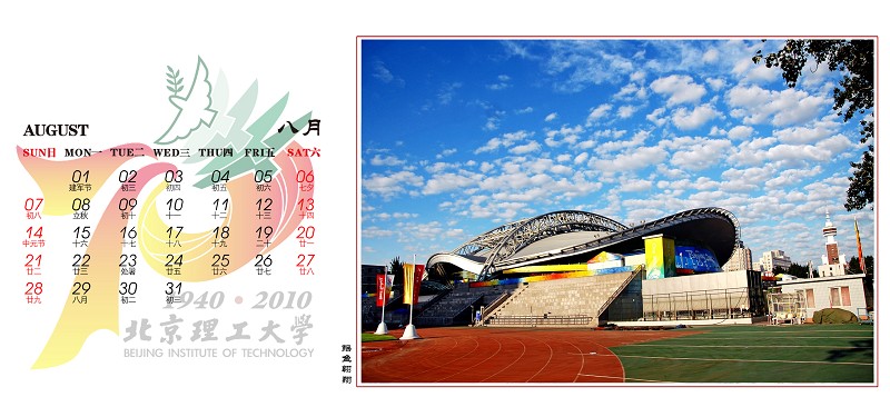 根据大家的需求,我公司最新设计制作了2011年北京理工大学校园风光台历两种,有需求者请与我公司联系订购。另如果需求量较大,可根据要求在台历背面印刷由需求单位提供的图文资料,在台座上烫金印刷本单位名称等等,也可以单独重新设计制作内容(制作周期一周左右)。