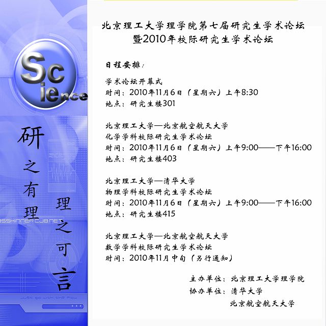 附:北京理工大学理学院第七届研究生学术论坛暨2010年校际研究生学术论坛日程安排