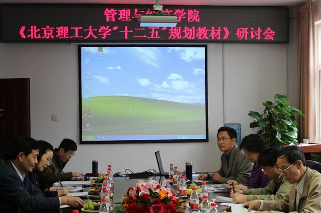 2012年4月19日下午,管理与经济学院召开了北京理工大学“十二五”规划教材建设研讨会。教务处副处长曹峰梅和负责教材建设工作的杨煜祥老师应邀出席会议,管理与经济学院党委书记李金林、副院长董沛武以及管理与经济学院获得批准的北京理工大学“十二五”规划15本立项教材的主编出席会议。研讨会由管理与经济学院本科教学中心主任王月辉主持。