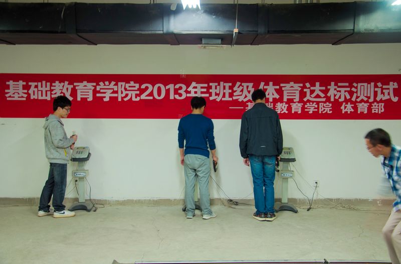 为了实现北京理工大学“高远的理想、精深的学术、强健的体魄、恬美的心境”的育人目标,促进学生积极参加体育锻炼,养成良好的锻炼习惯,提高体质健康水平,基础教育学院、校体育部积极响应教育部与国家体育总局提出的《国家学生体质健康标准》,于4月12日在良乡校区图书馆地下室成功启动了基础教育学院2013年班级体育达标测试,此次测试以基础教育学院的班级自愿申报为主,覆盖面达到128个班级,学生3800余人,将主要利用周末时间在4、5月份内完成对参与测试学生的体质状况评估。