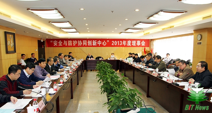 2014年1月9日,安全与防护协同创新中心2013年度理事会在北京理工大学国际教育交流中心三层第一会议室召开。理事长北京理工大学校长胡海岩、副理事长中国兵器工业集团副总经理曾毅、副理事长代表南京理工大学副校长刘刚、副理事长代表北京大学工学院副院长方岱宁、副理事长代表中国工程物理研究院院长助理黄辉,理事中国兵器工业集团微机电子集团副董事长黄铮、南京理工大学机械学院院长何勇、南京理工大学化工学院副院长沈瑞琪、中国工程物理研究院904所所长邱勇、北京理工大学副校长赵长禄、杨树兴、中心主任黄风雷,理事代表中国兵器工业集团公司科技部副主任翟利鹏、中国兵器工业集团公司第204研究所副所长张晓宏、中国兵器工业集团公司第213研究所副所长褚恩义、中国兵器工业集团公司第52研究所总经理孙敏、中国兵器工业集团公司第203研究所所长黄耀华、北京大学工学院教授周文灵、中国工程物理研究院901所处长李雷等参加了会议。