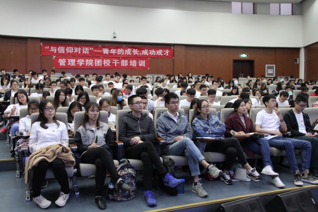 2017年4月19日下午六时,由北京理工大学管理与经济学院团委主办的主题团课“与信仰对话——青年的成长、成功与成才”在良乡校区综合教学楼报告厅顺利举行。本次团课主讲嘉宾为中国青年政治学院(中央团校)共青团工作理论研究所所长吴庆。管理与经济学院团委书记张瑞,2014级辅导员贾一宁出席本次团课,管理与经济学院大一至大三全体学生团干部到场聆听。