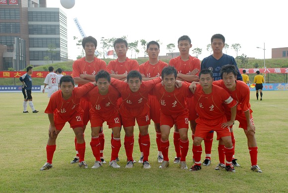 北京大学生足球队大运会赛场上首次亮相