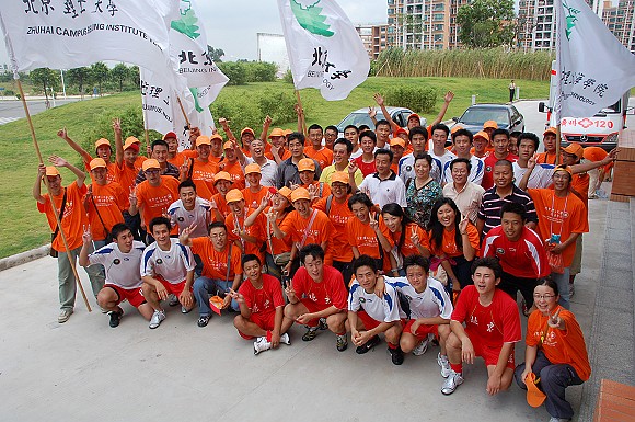 北京理工大学珠海学院的同学们专程从珠海赶来为母校足球队加油助威!