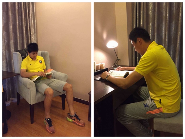 每年的六、七月,是各级比赛的紧张阶段,而让学生球员们更有压力的则是北理工的“考试周”同样来临。6月4日,在前往武汉参加中甲联赛的路上,随处可见捧着书本苦读的学生球员们,已经是职业联赛场上主力的2013级研究生胡明也是其中之一。“比赛结束之后,我们《品牌管理》这门课就要进行结课考试了,没办法集中复习,只能抽空复习了。”胡明告诉我们,这种状态同学们已经习以为常,遇到考试周与比赛重合,学生球员们都会抓紧路途上的时间学习,到达驻地之后就“闷”在宾馆里,备战回校后的考试。学习是一名学生的职责,大学生球员们不能耽误,他们比普通学生要流淌更多的汗水,学业与足球,一个都不能少,也没有少。
